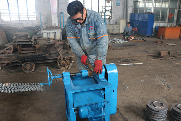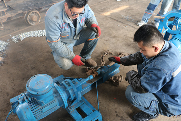 制造旧刮板链螺栓拆卸机。由于生产战线长,刮板输送机较多,井下潮湿的环境让刮板链螺栓浸满污垢,生起铁锈,给人工拆卸带来困难。以前处理的办法是用气割把螺栓割掉重新换上新的螺栓再使用,为节省开支,机厂领导带领电焊工使用2.2kw的小型电机,利用减速箱和螺栓套头,制造出刮板链螺栓拆卸机,解决了旧刮板链螺栓无法拆卸的难题,大大减少了新配螺栓使用量。#p#分页标题#e#
