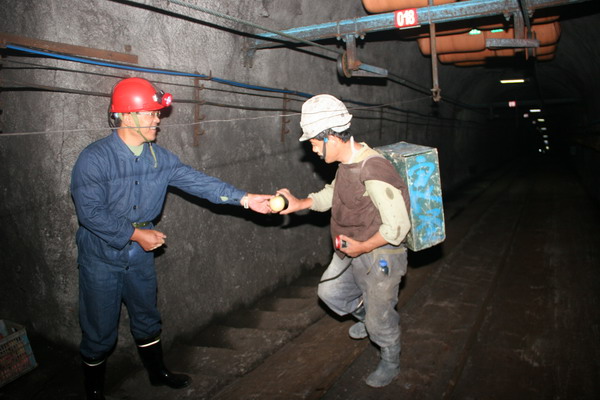 崔庄煤矿党总支及时了解到这一情况,从关爱自己员工的角度出发,决定在猴车检修的这段时间里,由群监委、青安岗组织人员分三班开展“为员工送水果”活动。群监员、青安岗员把水果抬到井下猴车下口上车点,给一个个疲惫的员工递上水果,亲切地说:“你们辛苦了,我们代表矿领导给你们送水果。”职工充满感激和自豪地接过水果,脸上洋溢的是幸福的笑容。#p#分页标题#e#