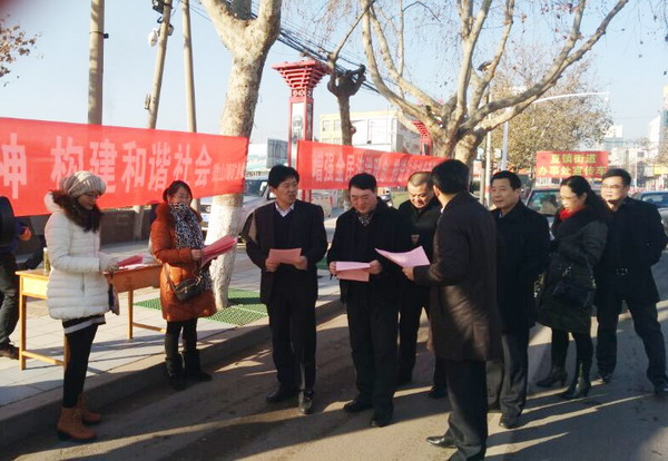 奎文路段公司职工向县领导发放宣传资料