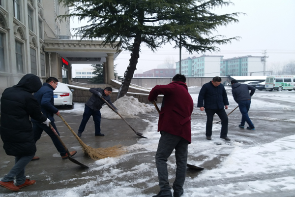 冒着飕飕袭来的寒风,大家不畏严寒,积极主动、相互配合、齐心协力,挥舞着铁锹和笤帚,你铲我扫,一点点地将积雪和冰层铲起集中堆放,尽管大家的脸都冻得通红通红,但手中的扫雪工具却不停地挥舞着,忙得浑身是汗,在欢声笑语中扫出了干净的厂区和畅通的大道。经过一个多小时的辛勤劳动,公司厂区大部分道路的积雪被清扫干净,使大家在安全行走时增添了几分好心情。