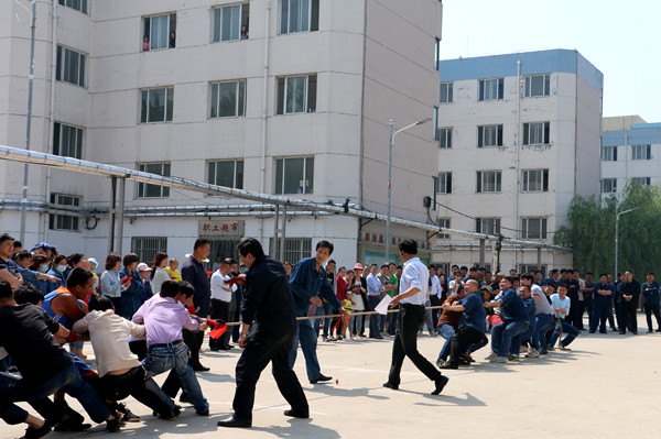 在国际劳动节到来之际,泗河煤矿于5月2日举办拔河比赛活动。来自一二线工区科室、三线科室的10支代表队参加了比赛。