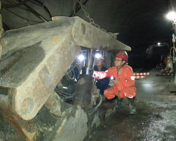 技术人员在井下巷道维修液压支架
