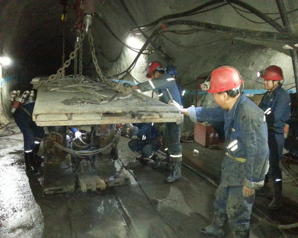 据了解,一号矿2套薄煤层综采液压支架购于 2009年,期间采煤工作面停采后,支架就留在原工作面,时长达两年之久。为确保矿井采掘接续安排,二号矿新接续的16105工作面必须要在11月初安装完成,而原停采12104面114个综采支架由于搁置时间长,损坏老化严重,必须进行大修后才能用于新的工作面。一号矿迅速组成工程技术人员勘察现场、认真分析、综合比较、制定维修方案,利用废旧巷道,在井下建立维修车间,实现支架的起吊装卸、维修、存储和转运。维修车间设在支架搬家运输沿线附近平车场内,方便运输;打锚索安装起吊盘,利用双油缸平衡起吊,安全稳定;车间两侧安设阻车器,确保安全设施齐全;设三个起吊点,确保3个支架能够同时进行维修,提高工作效率;支架维修车间往里利用180m废旧巷道,重新铺道、打地坪,双排压茬存放,确保完好支架的存储,实现安全顺利维修。本次工作面搬家,建立了自己的井下支架维修车间,减少了运输环节,提高了维修效率,促进了安全管理,缩减了维修时间,大大节约了维修成本,114个综采支架全部维修完成后,比运到井上维修节约费用近百万元。