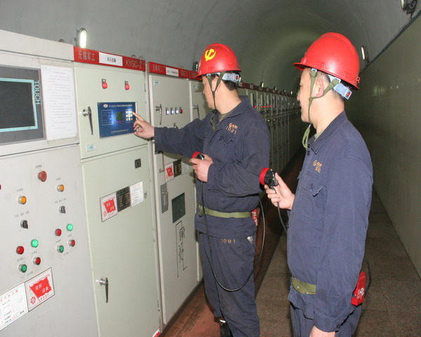 机电检查人员在井下变电所进行检查