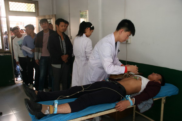 按照集团公司统一部署,10月12日至20日,崔庄煤矿组织一线、二线区队及二线科室干部职工在矿职工医院进行2015年职工职业健康查体活动。此次体检由县疾控中心组织人员进行,根据职业病危害范围查体主要有高千伏胸片、B超、心电图、电测听、肺功能、血压、肝功、甘油三酯、血糖、丙谷转氨酶、总胆固醇、血/尿常规等项目,总计查体人数1553人。矿安全科、职工医院全程跟踪协调配合做好检查工作,保卫、保安现场维持秩序,按照每天排好的计划表依次进行检查。