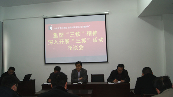 2月14日,永胜煤矿组织召开“重塑三铁(铁心肠、铁手腕、铁面孔)精神,开展三抓(抓‘三违’、抓质量、抓考核)行动”座谈会,正式启动“三铁”、“三抓”专项行动。会议充分讨论了在当前安全生产形势下重塑“三铁”精神的重要性以及在安全生产过程中如何实践“三铁”精神的方式方法。