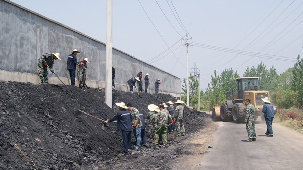 永胜煤矿矿区外围墙底部斜坡由矸石铺垫,建矿初期至今处于裸露状态。尘土飞扬,杂草丛生,墙体斜坡下面就是附近村居民日常经过的公路,夏季暴雨时大量矸石、泥沙出现滑落,附近村民也向我矿反应存在的隐患问题。为避免对过往车辆及行人造成不必要的伤害,防止斜坡面的扬尘污染,协调好地矿关系,经矿决定由销售科和皮带工区共同组织一支施工队伍,在不影响矿正常生产的情况下,利用换绳期间对矿围墙进行低成本的喷浆护坡工程。矿销售科和皮带工区职工在接到护墙通知后,以最快的速度开始施工,在克服杂草、日晒、柳絮各种不利条件对斜坡进行平整喷浆完成围墙修葺。喷浆后的围墙斜坡问题得到有效的治理,周围环境也得到很好的改善,受到当地居民一致好评。