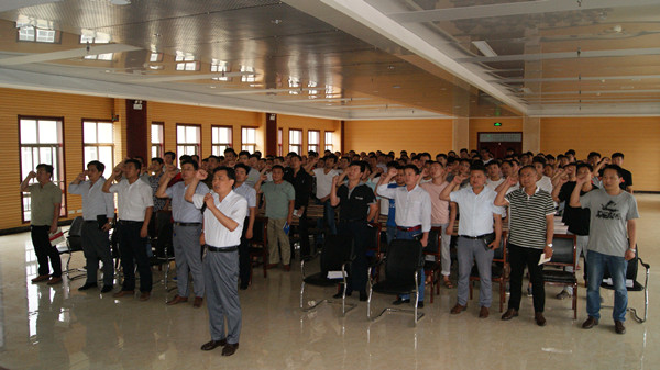 最后,韦连波带领全体人员庄严宣誓:为了自己的安全,为了家人的幸福,为了企业的发展,我郑重宣誓遵守规章制度,严守操作规程,遵守劳动纪律,提高安全意识,增强业务技能,加强安全防范;拒绝三违,不留隐患,做一名合格的永胜人。#p#分页标题#e#