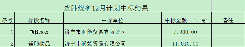 招标结果:微山湖矿业集团(永胜)12月材料采购招标