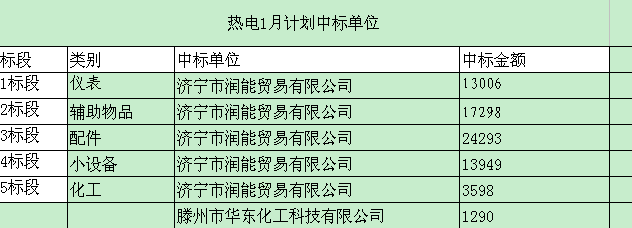 招标结果:微山湖矿业集团(热电)1月材料采购招标