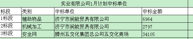 招标结果:微山湖矿业集团(焦电厂)1月材料采购招标