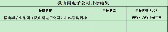 招标结果:微山湖矿业集团(微山湖电子公司)材料采购招标