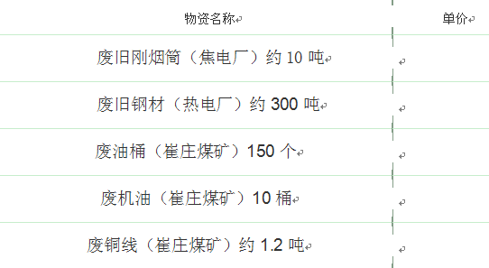 微山湖矿业集团有一批废旧物资需要处理,请有采购意向的商家到现场见实物后参与竞标。标书封闭盖章后交予微山湖矿业集团招投标办公室。