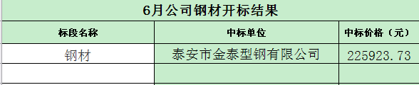 招标结果:山东省微山湖矿业集团6月(钢材)材料采购