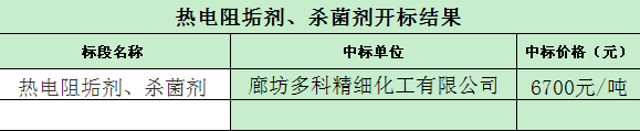 招标结果:山东省微山湖矿业集团(热电厂)--阻垢剂、杀菌剂