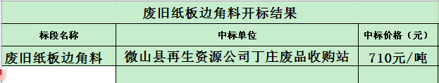 招标结果:山东省微山湖矿业集团废旧纸板边角料