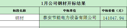中标结果:山东省微山湖矿业集团1月(钢材)材料