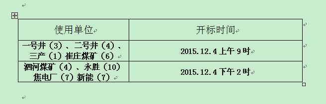 投标地点:微山湖矿业集团一楼会议室