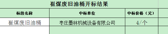 招标结果:山东省微山湖矿业集团废旧油桶(崔煤)
