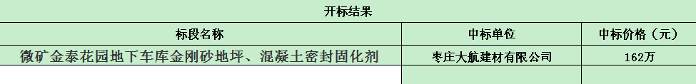 招标结果:开云在线娱乐金泰花园地下车库金刚砂地坪、混凝土密封固化剂