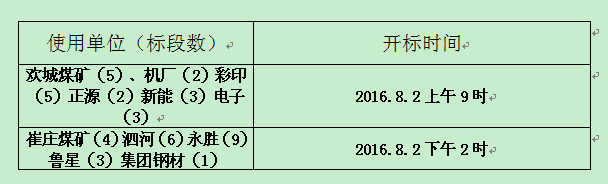 一、招标名称:山东省微山湖矿业集团8月材料采购招标