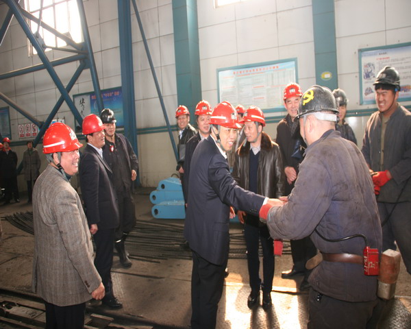 督导组一行每到一处,便与奋战在生产一线的职工亲切握手,鼓励大家安全生产,努力工作,创造更大效益。周洪向余进荣详细了解了矿长下井带班情况,查看了领导带班记录,并要求余进荣现场对《煤矿矿长保护矿工生命安全七条规定》进行口述,与正在井下带班的矿副总工程师孟宪富通了电话,了解井下安全生产的具体情况,并向井下全体职工致以亲切的慰问。
