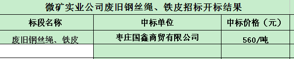 招标结果:开云在线娱乐实业公司废旧钢丝绳、铁皮