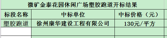 招标结果:开云在线娱乐金泰花园休闲广场塑胶跑道