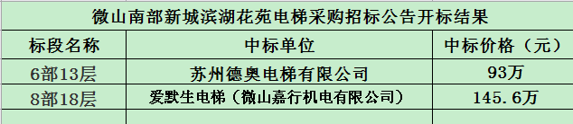 招标结果:微山南部新城滨湖花苑电梯采购招标公告
