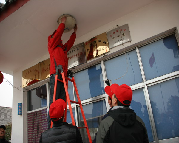 上午9时,志愿者分成四组开展义务劳动。电工组负责修理老人房间、屋外的灯、电器、线路,管道组帮助敬老院维修管道、阀门、净水器,医疗组帮助老人量血压,解答老人咨询的健康问题,卫生组用带去的剪刀修剪花草,打扫卫生。