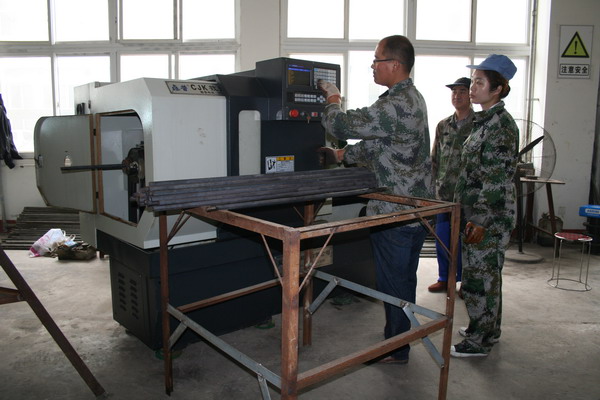 4月下旬,由兵工带来的数控车床等设备全部安装调试完毕,正在对操作人员进行数控车床、气焊专业培训,实现了设备当月安装、当月生产产品的目标。