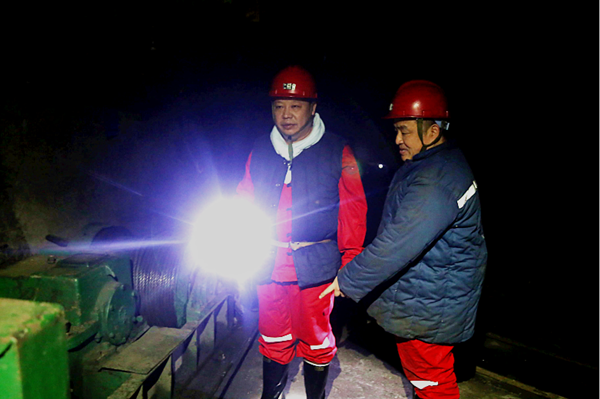2月18日,集团公司党委书记、董事长张玉涛、纪委书记江斌带领安监、生产、机电、企管等部门同志到欢城煤矿检查安全生产工作。欢城煤矿领导班子及相关科室人员陪同检查。