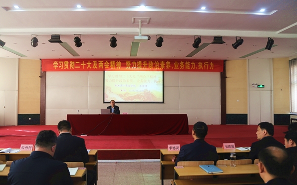 本次活动邀请济宁市委党校吕明伟教授、山东科技大学张培鹏教授、微山县委党校朱晓艳老师分别以《学习贯彻党的二十大及全国两会精神,努力提升政治素养、业务能力、执行力》《企业安全管理意识培养及能力提升》《全面建设社会主义国家的政治宣言和行动纲领——学习贯彻党的二十大精神》为题作了专题讲座。