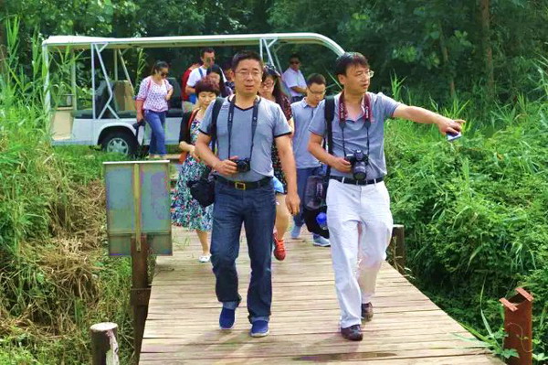 在济宁市旅游局规划科科长王申臣、微山县旅游局副局长朱素梅等人的陪同下,采风团来到微山湖国家湿地景区。7月的湿地景区草木扶疏、芦荷遍地,跨河浮桥与同心桥遥相呼应,滨河木栈道两边草长莺飞,成群的白鹭,灰鹭在林边栖息,婉如一幅浓墨重彩的风景画卷,让采风团近距感受了微山湖湿地之美,红白荷花交相辉映的美景,更是让采风团叹为观止,纷纷拍照留念。