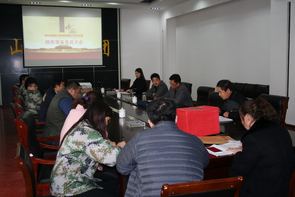 在鲁星矿业公司会议室,集团公司政工部副部长张敏、三产部常务副部长朱道华、企管科副科长毕士美列席了会议。会议由鲁星矿业公司党支部书记徐化峰主持,12名党员参加会议。按照会议召开的程序,鲁星矿业公司职工严海和崔慧静分别介绍了入党动机和对党的认识,以及个人家庭情况,入党介绍人赵磊同志全面客观地评价了两人平时工作和生活表现,对二人严谨认真的工作生活态度给予了肯定,对他们今后的工作提出了要求,要加强党性,在工作和学习中更加严格要求自己,做一名合格的预备党员。
