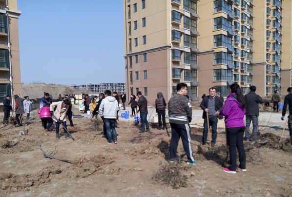 3月11日,开云在线娱乐集团金泰花园小区人头攒动,一派热闹的劳动场景。机关部室工作人员分工协作,挥锹铲土、扶苗踏实、盖土浇水,大家兴致勃勃、一丝不苟地栽下一棵棵新树,新种下的棵棵树苗生机盎然,不到三个小时,初春的小区又新添一抹绿色。