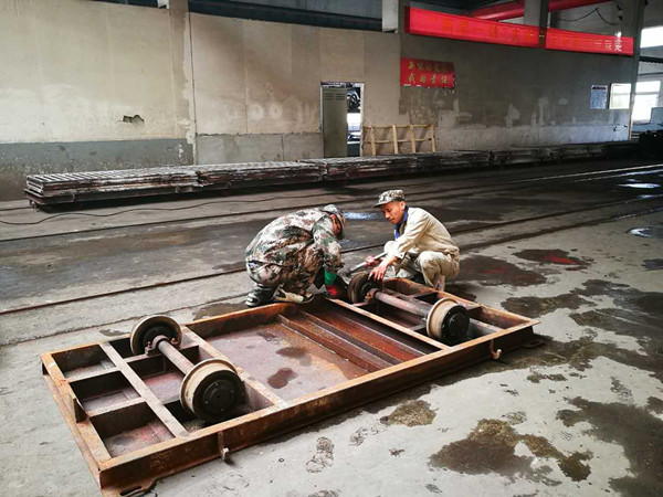 新能公司针对蒸养工段轨道车是使用最频繁的生产工具,常年在蒸压釜内经过高温、高压、高湿的环境,最易上锈,变形磨损严重,影响正常使用。