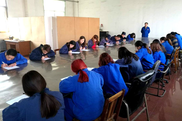 为使各项学习活动落到实处,在每周五的学习会议上,公司领导对员工的学习笔记进行检查,发现问题及时指出,督导帮助学习。为检验每个员工的学习效果,每月底一次全员集中考试不断线,并针对车间、职能办公室岗位的学习内容分开进行,领导现场监考。考试现场纪律严明,禁止交头接耳,抓住“小抄”当场取消考试资格,同时将每个员工的考试成绩纳入三级考核兑现绩效。