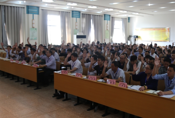 一时三十分,大会第二次全体会议在集团总部多功能厅举行。大会主席团向与会代表传达了主席团会议精神,表决通过了大会监票人、总监票人和《表决办法》,并对与会代表提出的意见或建议情况作出了说明。大会按照程序依次对集团经营班子《工作报告》决议(草案)、《微山湖矿业集团员工奖惩规定》决议(草案)、《微山湖矿业集团对一级单位领导干部实施年度考核及岗位轮换的暂行规定》决议(草案)、《微山湖矿业集团三年发展计划》决议(草案)进行举手表决,全票通过。