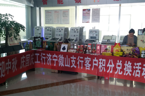 为回馈广大牡丹信用卡客户,工商银行微山支行于2017年9月28日-9月30日举办迎中秋、庆国庆工行客户积分兑换活动。微山湖酒业和德道源食品作为工行融e购电商平台合作伙伴,应邀参加此次活动。