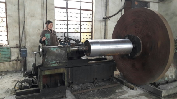 精密制造公司科研技术小组在2017年成功改造Φ320等各种小型号的皮带滚筒设备,使得维修质量得到大幅度提升,产品通过投入使用得到广泛好评的基础上,针对需求量较大的Φ400皮带滚筒维修只停留在初级水平,无法解决皮带滚筒横向跳动量严重超差和达到精修等问题,为切实解决这一瓶颈,公司科研组决定利用从酒业拉来的设备中的一台大头车可以改造自制专用加工设备,经过多次反复研究,技术人员把大头车里面有我们所需要的主轴箱、花盘,再去掉原来的夹持装置,换上卡盘、配上尾座、刀架床身,一台加工设备就有了雏形。经过多次操作试验过程中,技术人员着力解决了皮带滚筒横向跳动量严重超差的问题,又固定调整了部分零件,把原来的卡盘改装成三爪卡盘,调换了一台电磁调整电机,改变了转速,降低了进给量,保证了皮带滚筒横向跳动量更为精确,远远地超过了精密制造公司原有的技术要求,生产出的滚筒光洁度也得到了大大的提高,产品质量显著提高和提升,也使精密制造公司利用废旧设备技术革新取得了良好的效果。