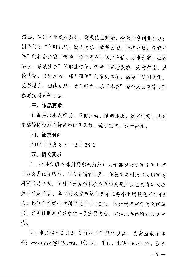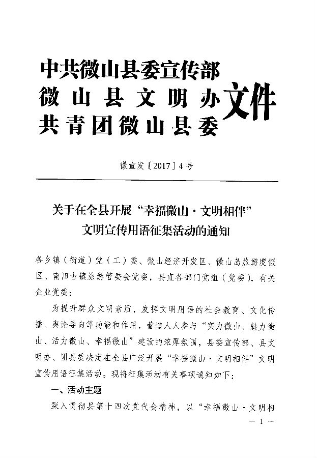 在全县开展“幸福微山 文明相伴”文明宣传用语征集活动的通知