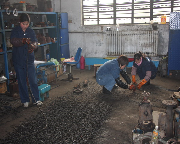 泗河煤矿井下地质条件复杂,巷道起伏大,运输环节多,皮带和钢丝绳更换量较大,更换下来的断裂皮带和钢丝绳在回收料厂堆放,影响环境。针对这种情况,泗河煤矿进行了废旧皮带和钢丝绳重新再利用,将旧钢丝绳拆开编织成锚网片用于掘进巷道顶帮锚网支护,替代现用的成品金属锚网和塑料网片。同时集思广益,将退换下的废旧皮带切割成宽15厘米的皮带条,替代用于顶板支护的金属锚钢梯,不仅节约了钢材,而且增加了支护强度,使用效果良好。